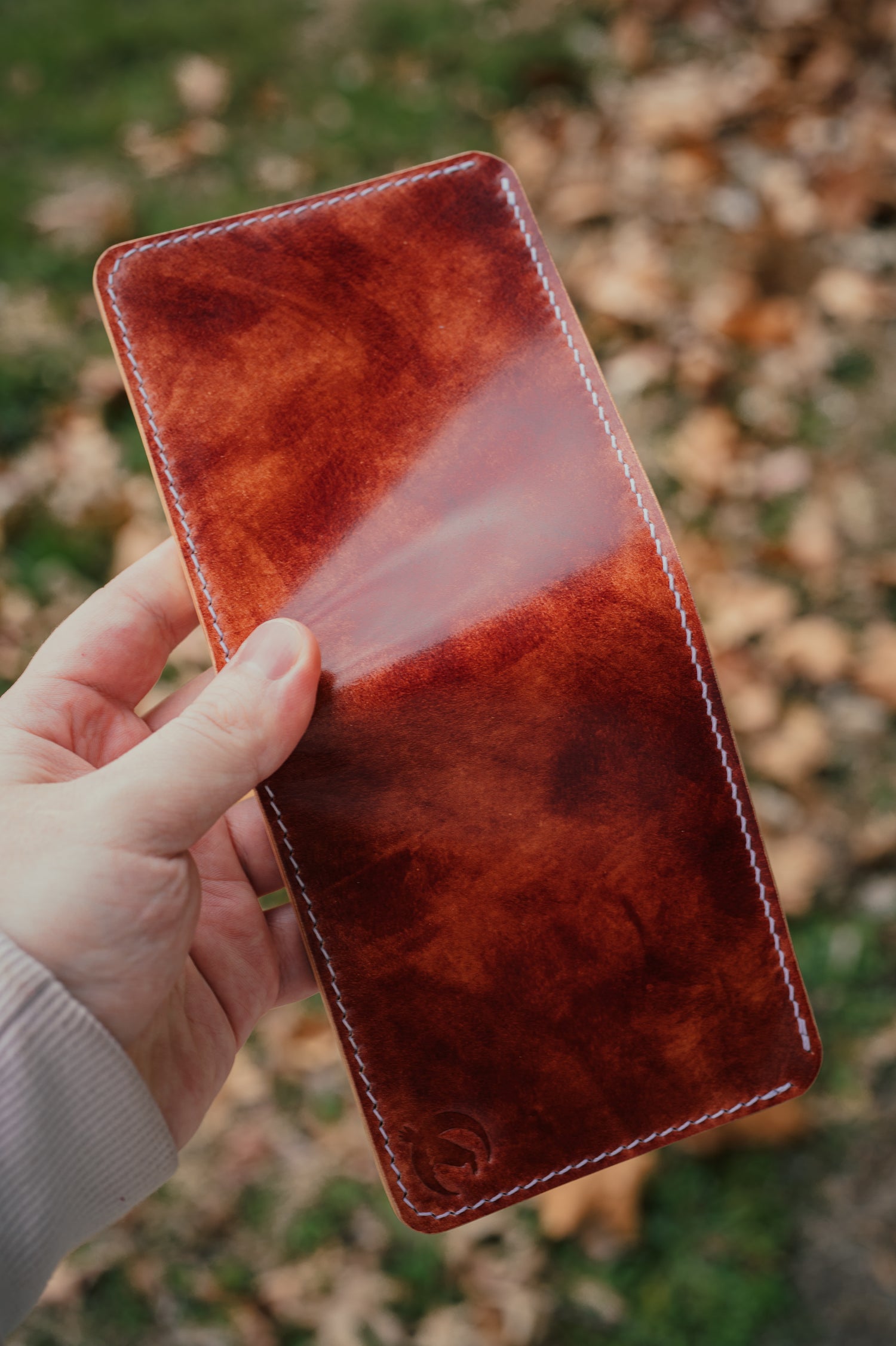 At Dark Sky Leather, our Featured Collection of Shell Cordovan wallets is crafted exclusively from Rocado Shell Cordovan, a leather prized for its deep color, natural character, and unmatched durability. Hand-cut and stitched in small batches, each wallet reflects the artistry and heritage behind one of the world’s most sought-after leathers. Whether you’re searching for a luxury handmade wallet to refine your everyday carry or a meaningful gift for men who appreciate true craftsmanship, this collection highlights our finest designs. Built to endure and made to impress, these Rocado Shell Cordovan wallets bring together timeless style and lasting quality.