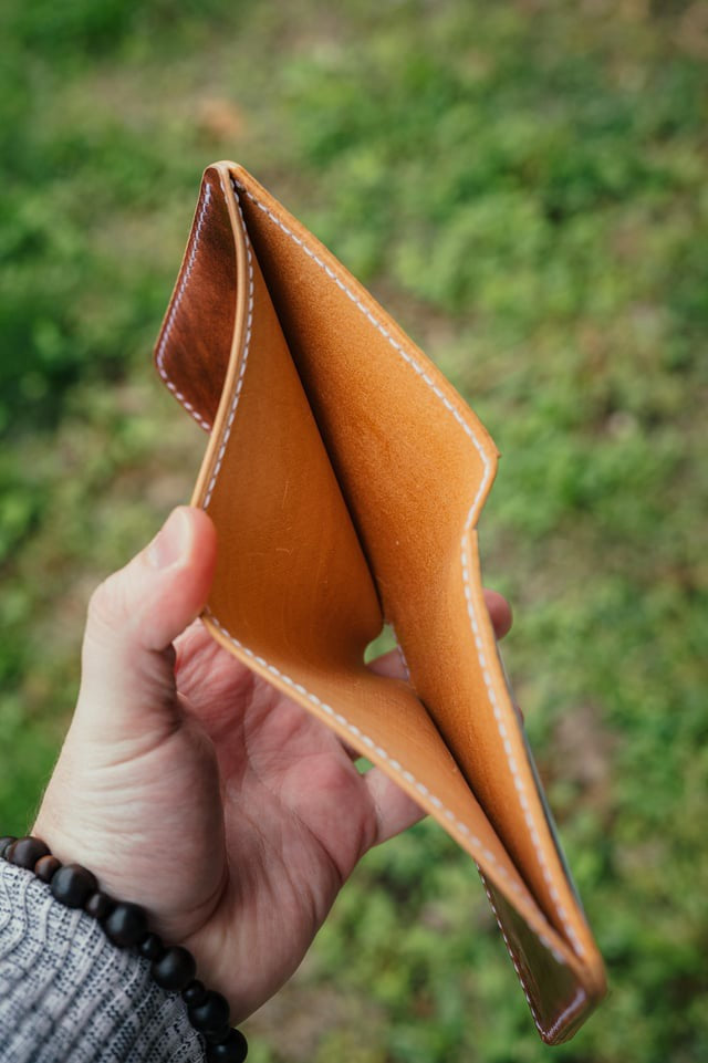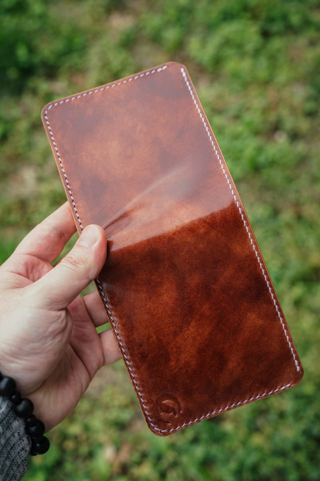All of my goods are hand-stitched, which is where most of the price lies. Hand stitching is superior to machines in every way. It's much stronger and looks better. It takes longer, but it's worth the extra cost.